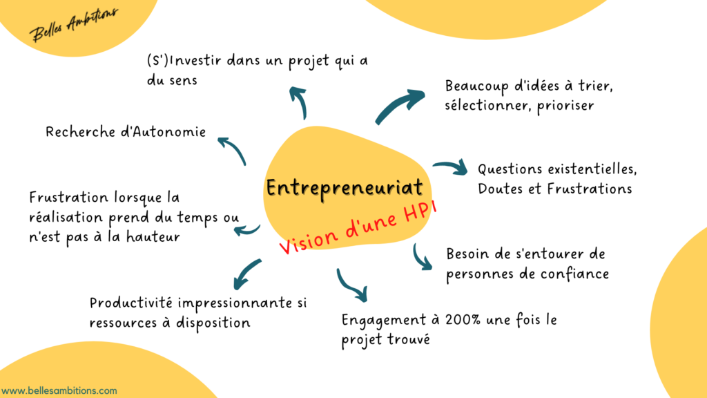 Me découvrant HPI sur le tard, je me suis demandée si certaines caractéristiques n’influaient pas justement sur ma façon d’être entrepreneuse et dans ma façon de gérer mon business.